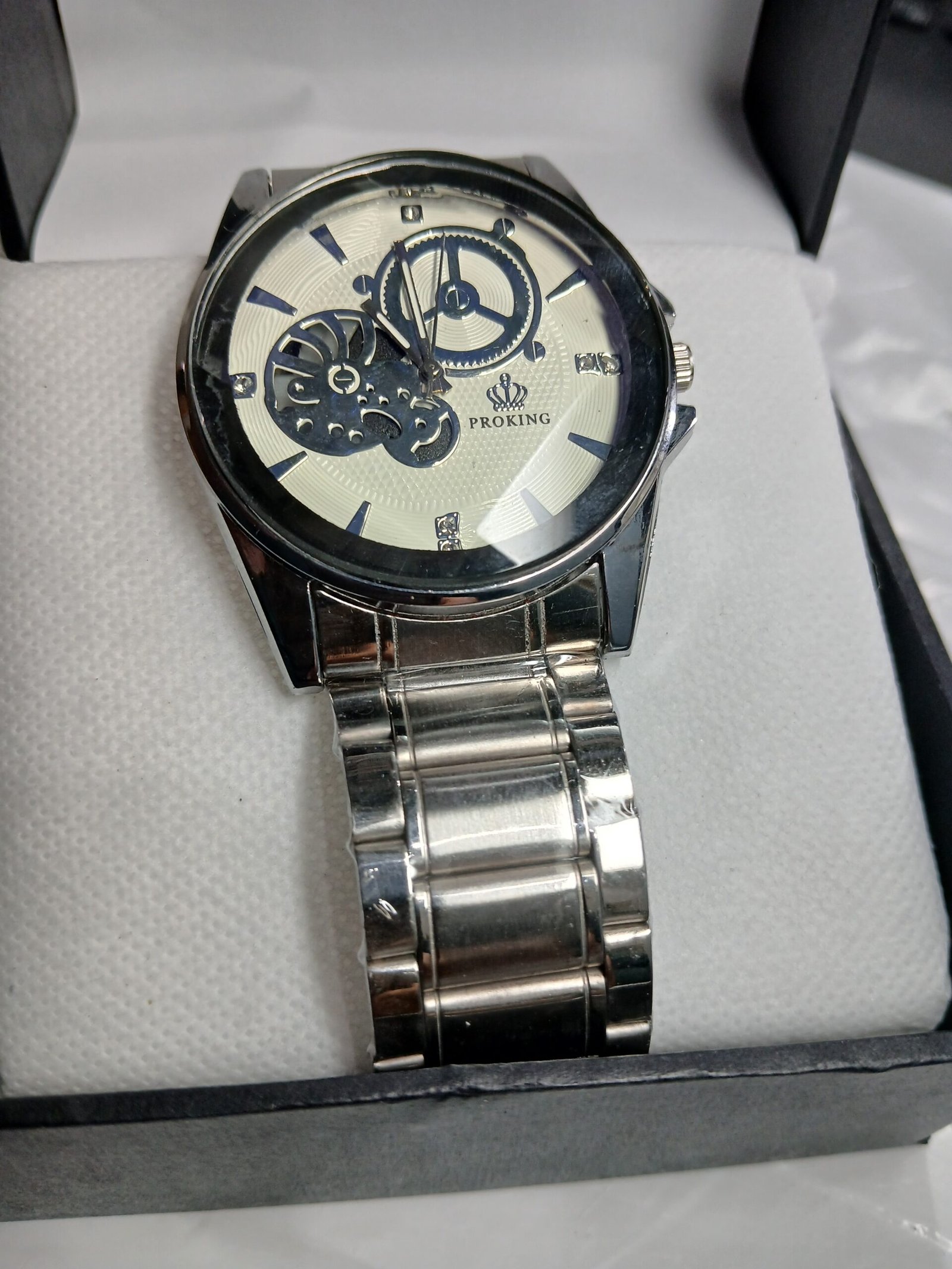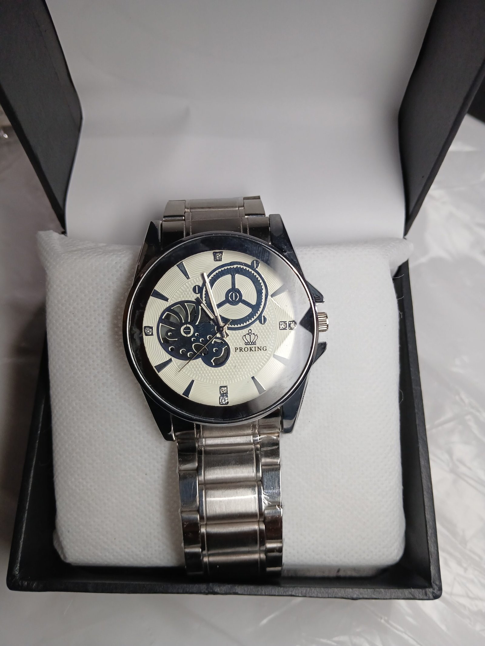 Experience timeless elegance with the PROKING Men’s Stainless Steel classic watch ⌚. This luxury timepiece combines sophisticated design with premium quality materials, making it the perfect accessory for both casual and formal occasions. Featuring a sleek silver finish, durable stainless steel strap, and precise quartz movement, this watch is built to last while adding a touch of class to your style.