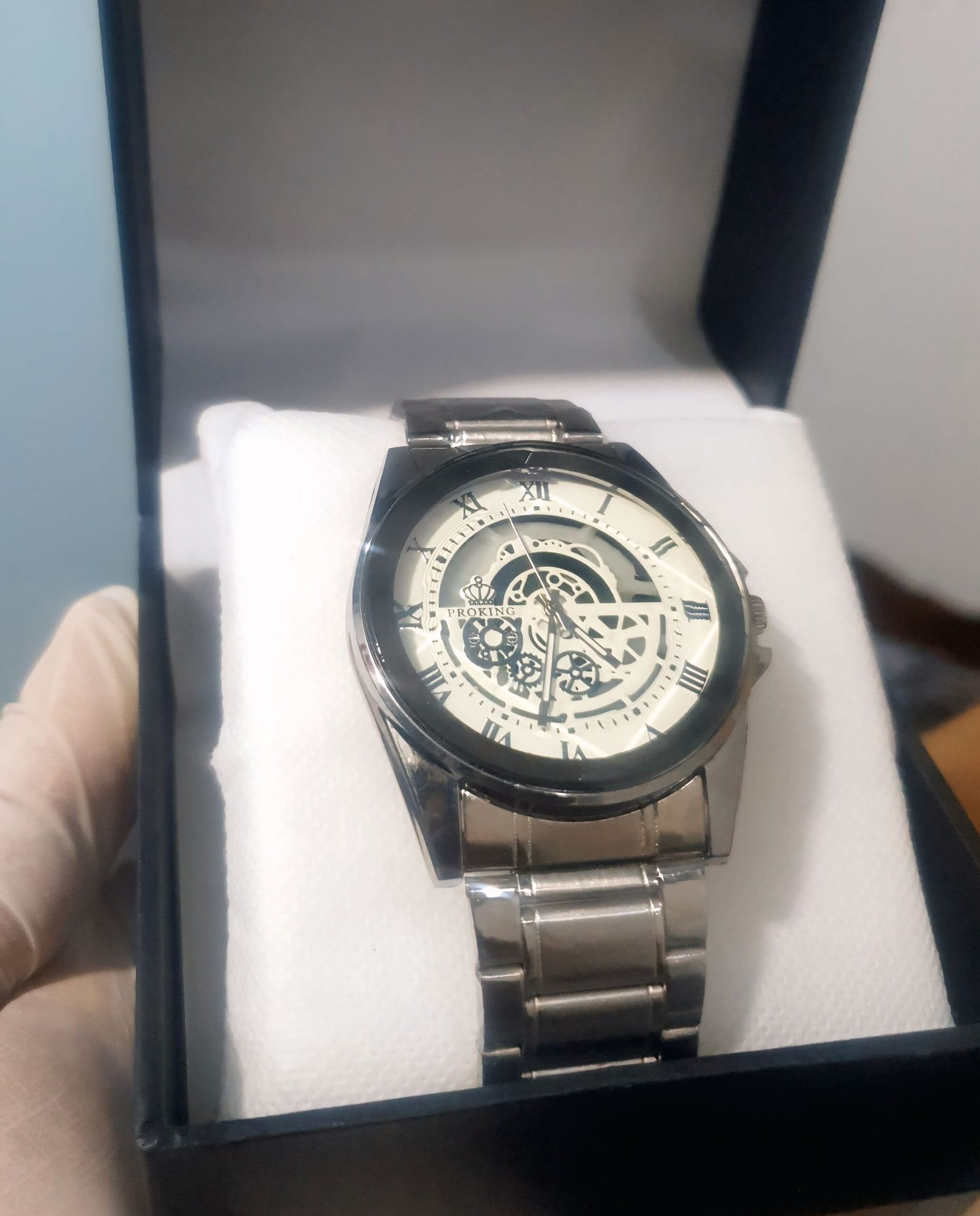 Elevate your style with the Proking Skeleton Automatic Men’s Watch – a masterpiece of craftsmanship and luxury. Designed with a skeleton dial showcasing its intricate mechanical movements, this watch blends modern elegance with timeless sophistication. The stainless steel silver strap adds durability, while the automatic self-winding mechanism ensures precision.